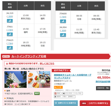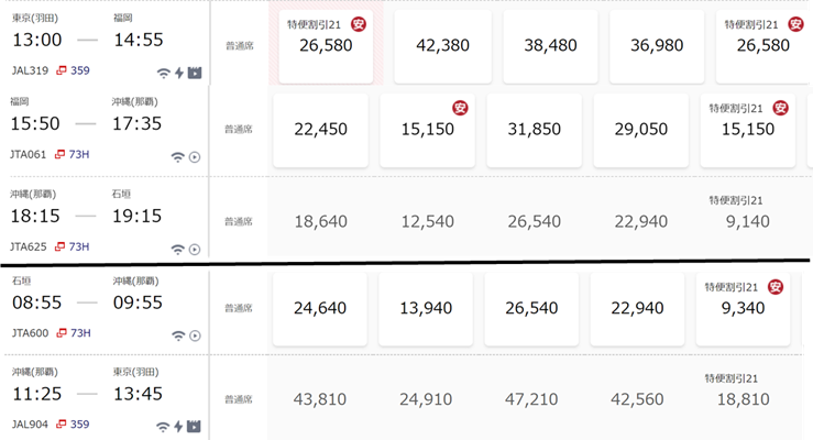 この日程でも、羽田-石垣直行便利用よりも乗継便利用の方が安くなりました!