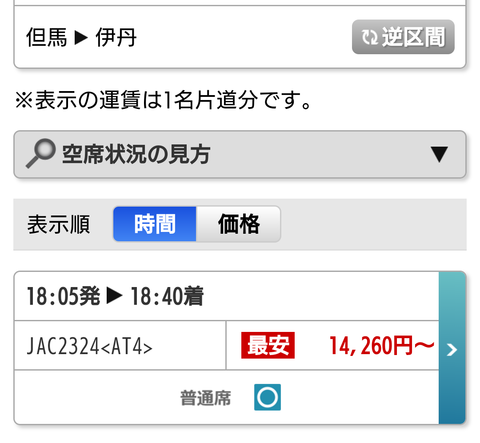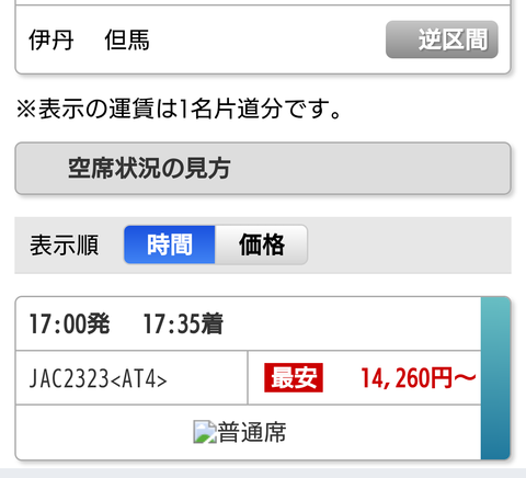 特に1月の伊丹-但馬線スカイメイト運賃は6900円であり、先得運賃とほぼ同程度の金額で搭乗することができました。