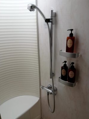 写真ではわかりにくいですが、中々広く清潔なシャワールームです。