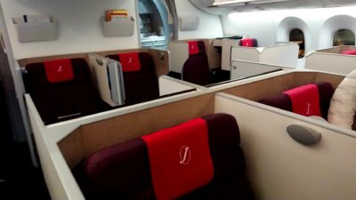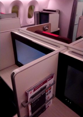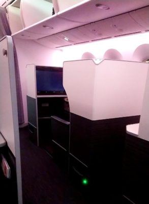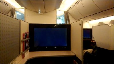 今回は事前リサーチでたまたまSKY SUITE仕様、すなわちフルフラット機での運航だとわかりましたが、フルフラットではない機材での運航もあるようです。