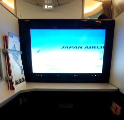 見慣れた安全ビデオもビジネスクラスでは一味変わった感じ。