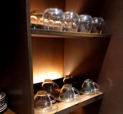 どうやらガラス製の透明なコーヒーカップが用意されているようです。これは新鮮!!
