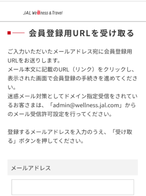 会員登録用URLを受け取るために、メールアドレスを入力します。
