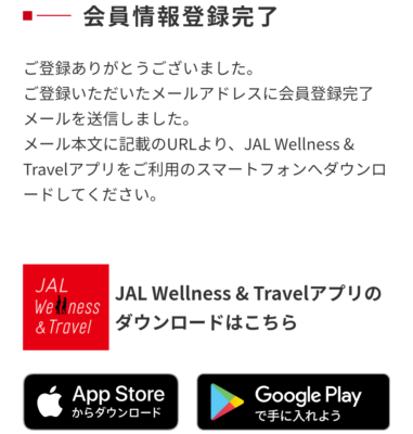 会員登録が完了すると、アプリのダウンロード案内が表示されます。