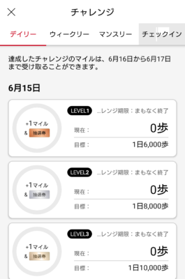 マイルが獲得できる一日の最低歩数は6000歩で、1マイルもらえます!