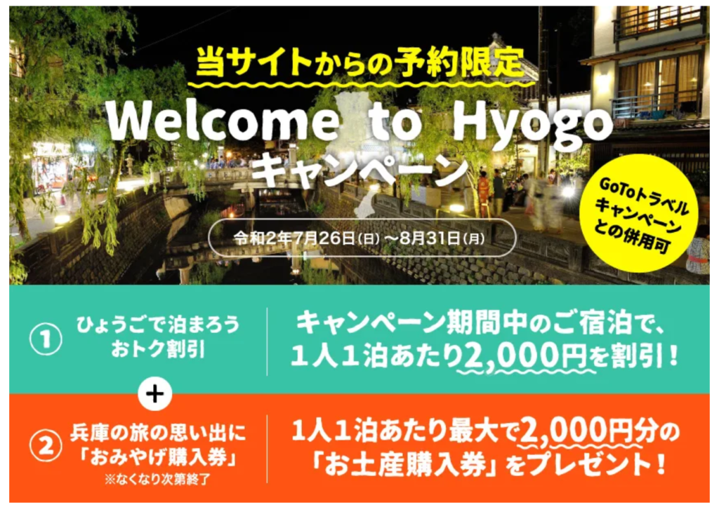 2020年8月31日までの期間限定で、城崎温泉ではWelcome to Hyogoキャンペーンが実施されています!