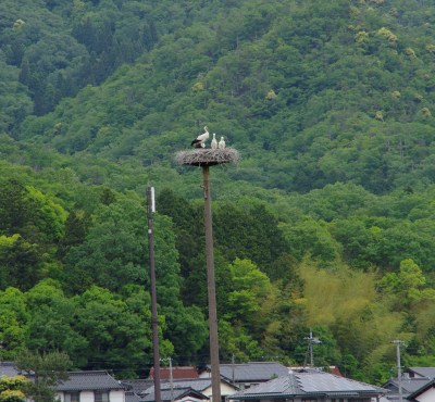 また周辺の田んぼには人口巣塔が設けられ、野生に返したコウノトリの親子の姿を確認することができます。