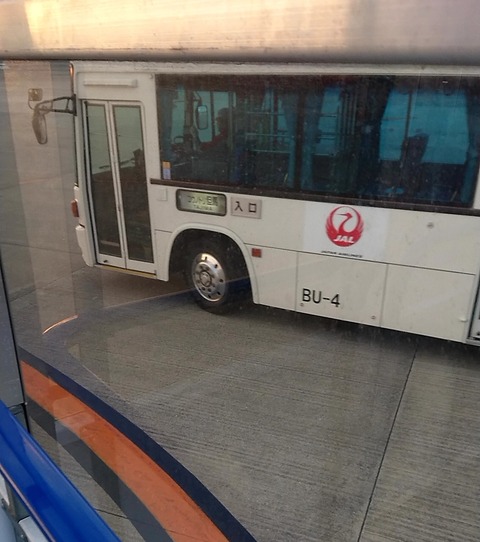 伊丹空港の飛行機搭乗用バス。行先表示も”コウノトリ但馬”