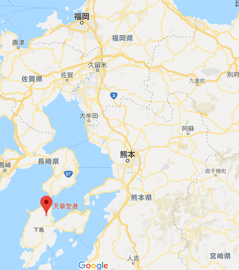 グーグルマップで見ていただけるとわかりやすいと思いますが、天草-福岡、天草-熊本の飛行距離はとても短いです。