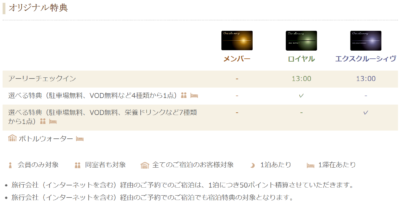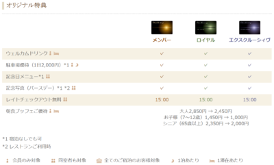 選べる特典(駐車場無料、VOD無料、栄養ドリンクなど7種類から1点)