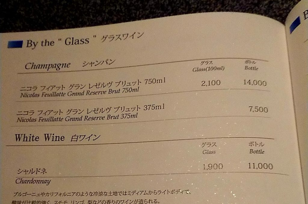 私はシャンパンを選択。2100円相当の代物です。