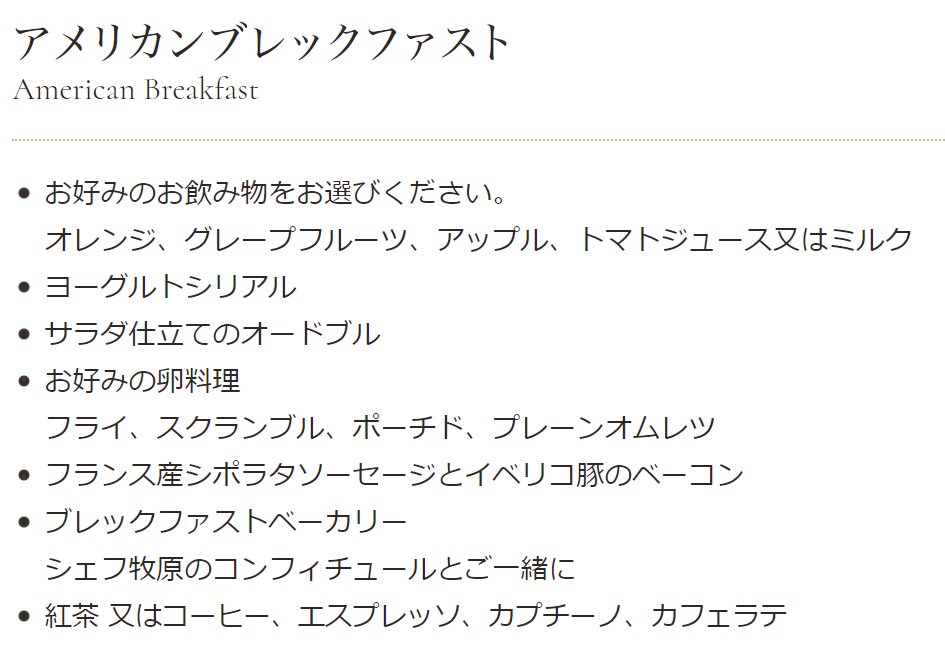 今回私の予約プランは「アメリカンブレックファスト」。