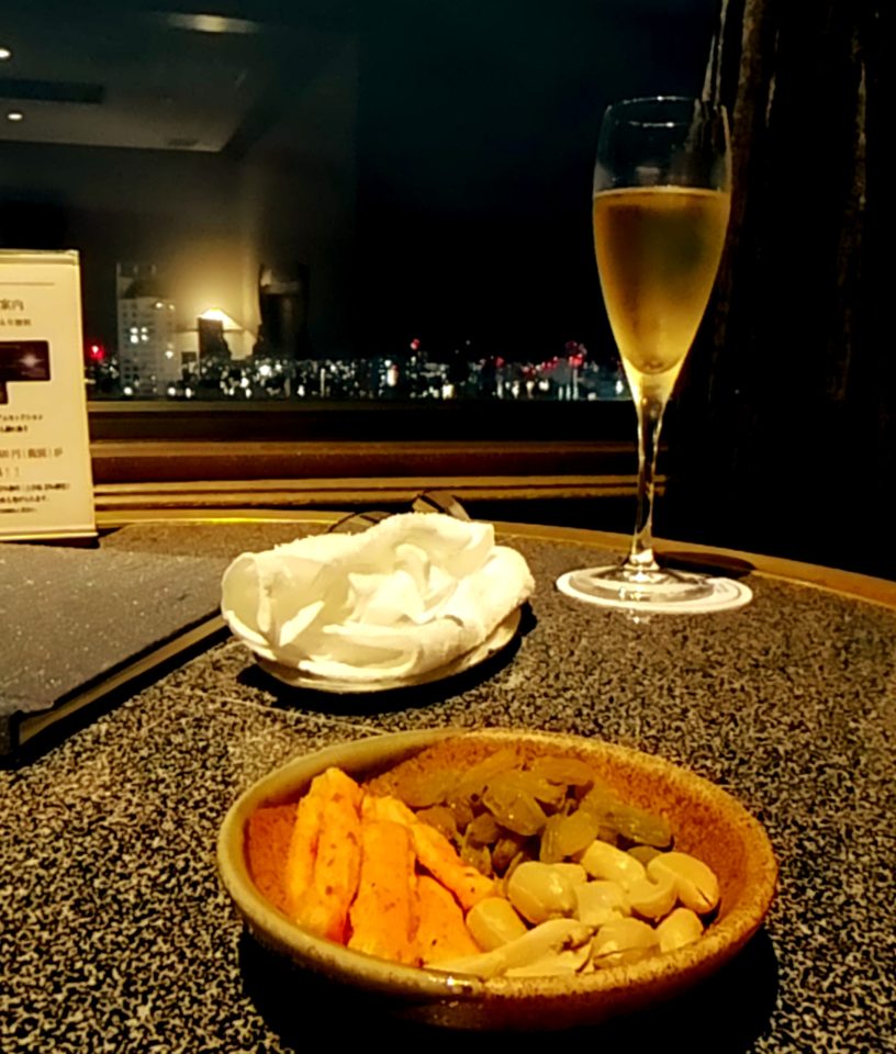 軽いスナックもいただき、夜景を眺めつつお酒を堪能。