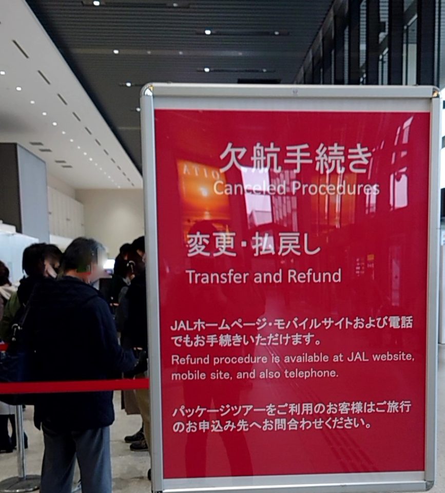 4. 欠航カウンターは激混み!でもJGC・JGPステータスなら安心!