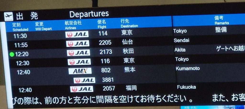 しかし現在コロナ感染拡大により大幅に減便中。次のJAL便は15:30発と、当初の4時間遅れとなってしまいます。