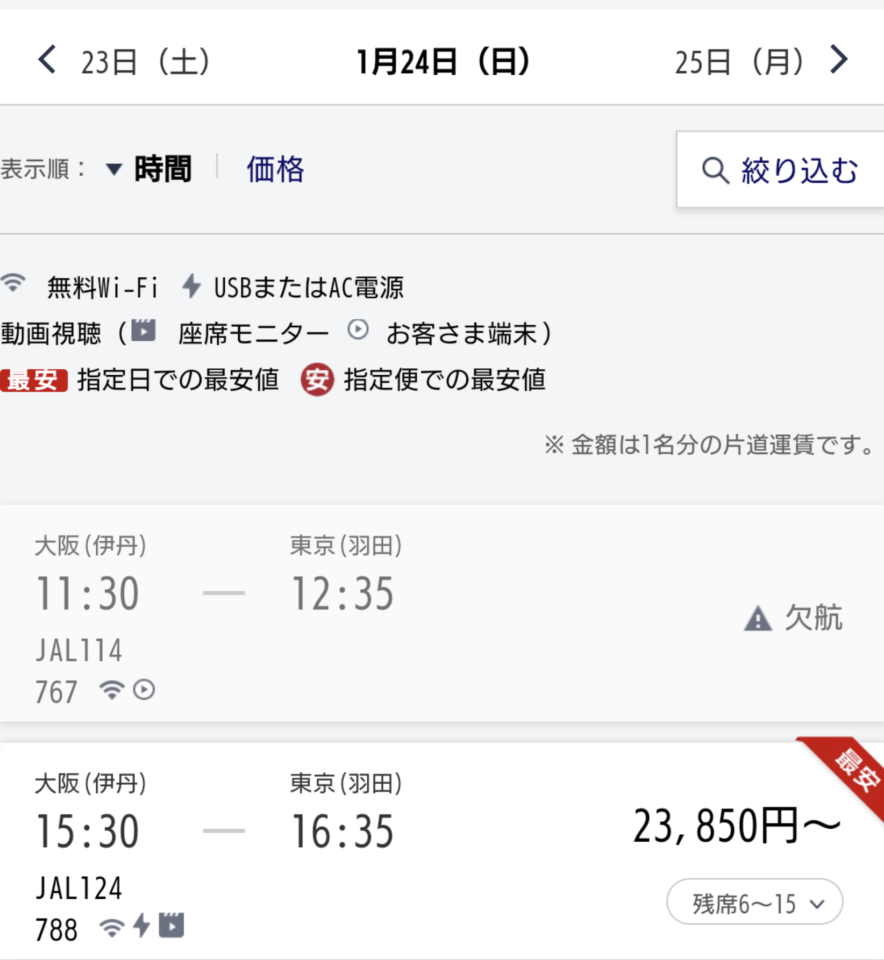 2021年1月24日、JGC修行で伊丹から3フライト搭乗する予定でした。しかし1レグ目、JAL114便伊丹発羽田行が出発直前に欠航!!