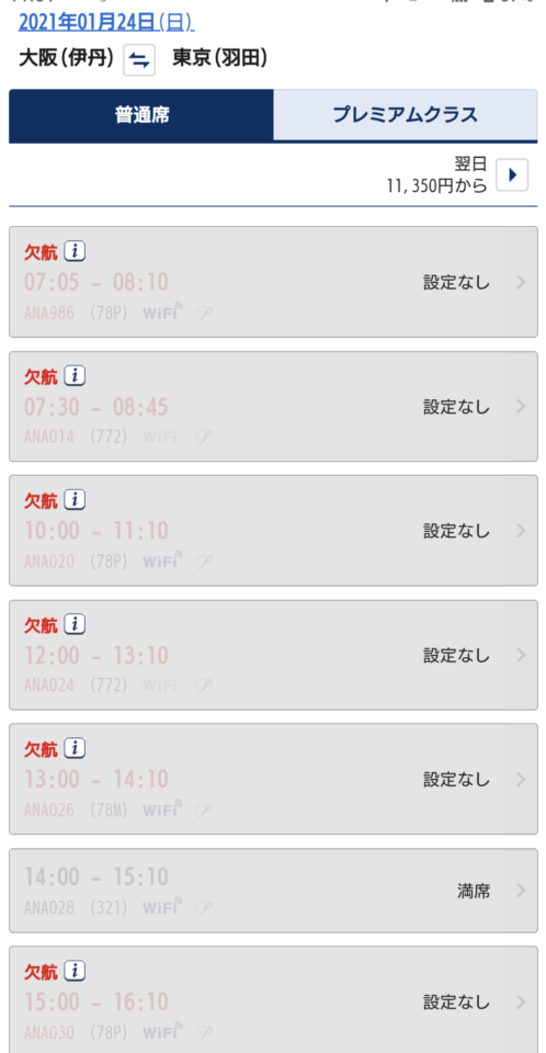 参考までにANAの空席情報を見てみると…
