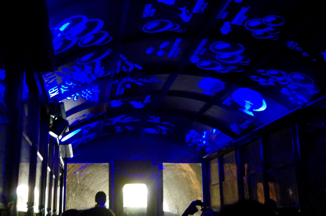 なんと屋根一面に関門海峡に生息する魚などが青く浮かび上がり、まるで海の中を進んでいるような演出がされました。
