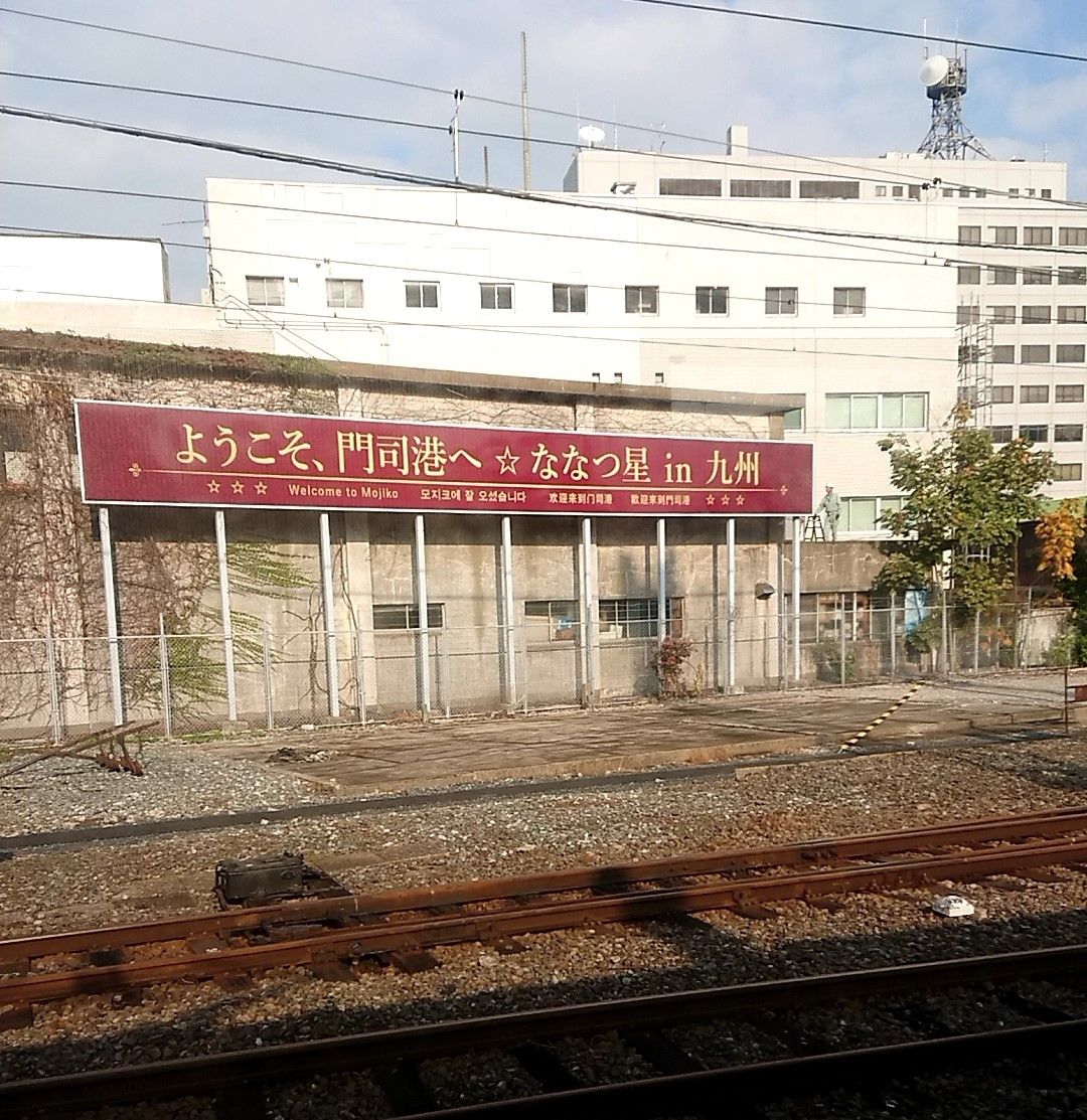 門司港駅到着間際には、ななつ星 in 九州の文字が!