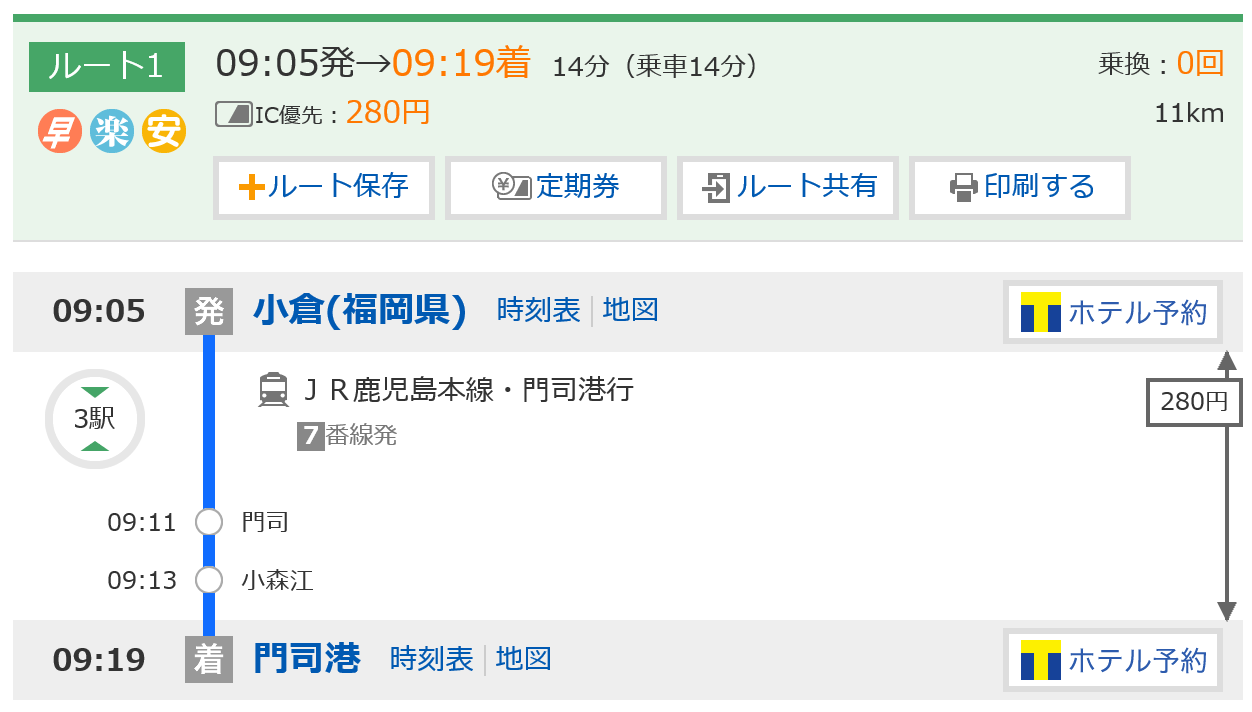 列車本数もそれなりにあり、小倉から門司港へのアクセスは良好です。