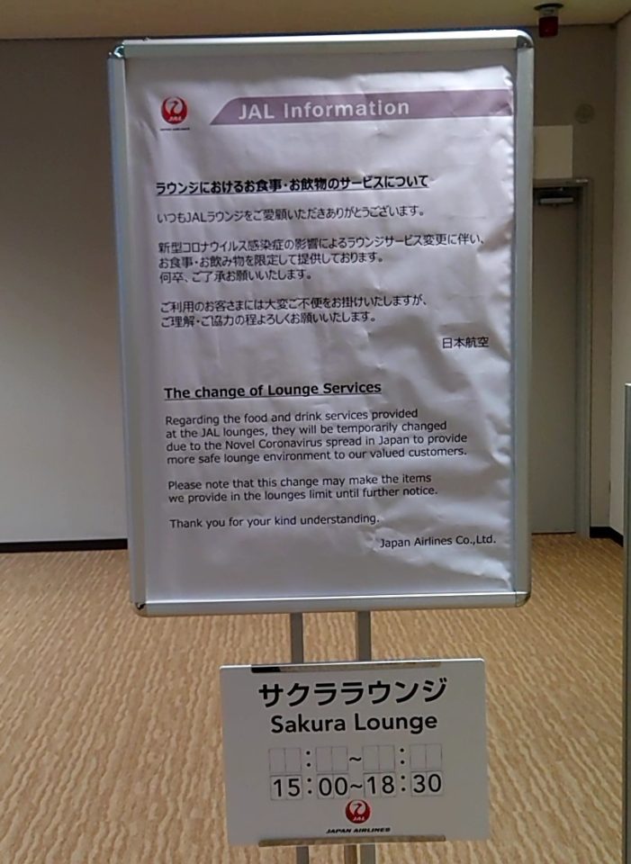しかしコロナ渦で全国各地の航空便が欠航となる中、特に国際線からの乗り継ぎ需要を拾っていたJALの成田発着国内線は壊滅的で、長いこと全便が運休、サクララウンジも閉鎖されていました。