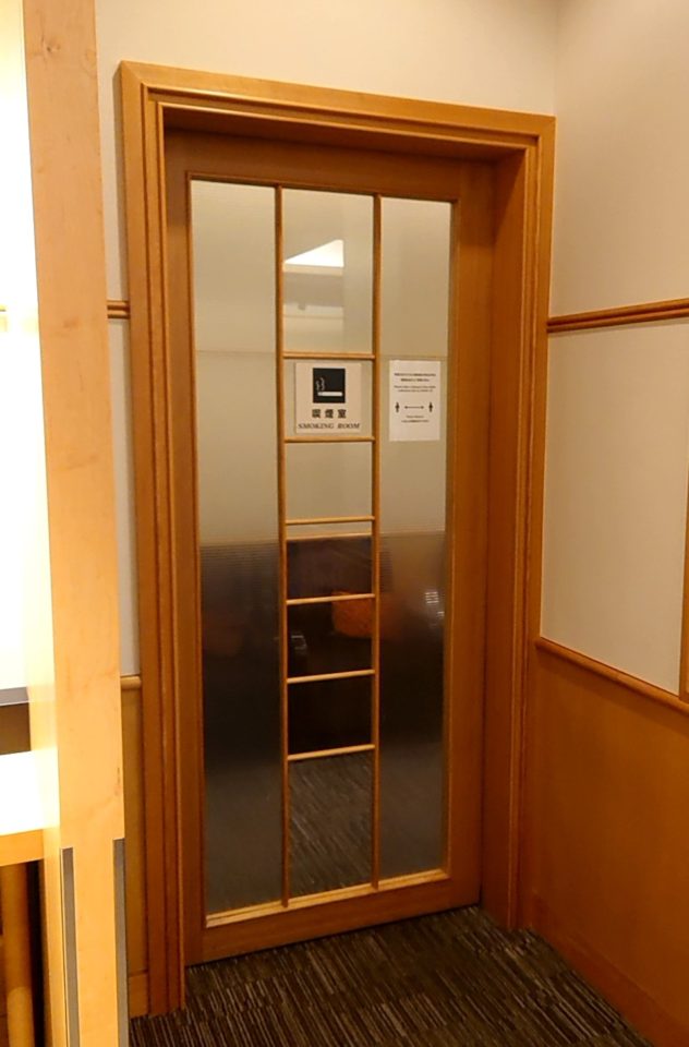 成田空港の国内線サクララウンジは、広めの喫煙ルームがあるのも特徴です。