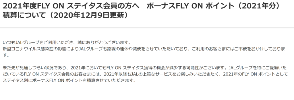 2. 2021年JGC修行の特例!ステータス会員向けFLY ON ポイントボーナス
