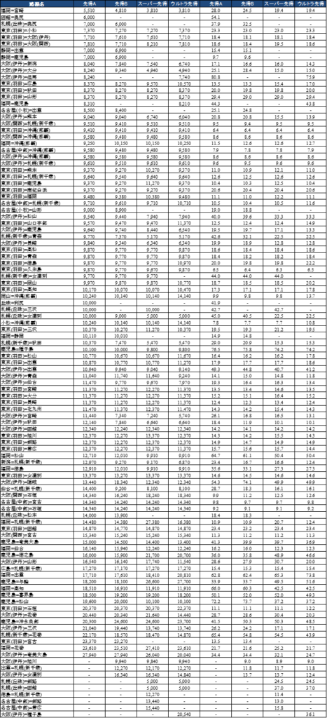 6.8.料金最安値一覧(ウルトラ先得)