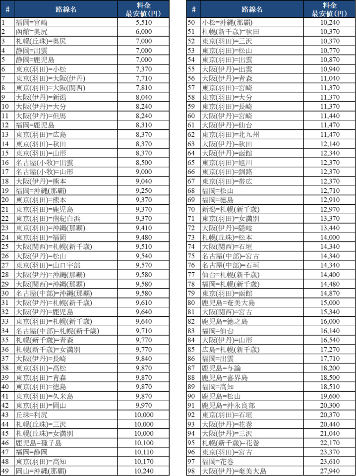 4.【JGC回数修行におすすめ】最安値上位路線はこれだ!