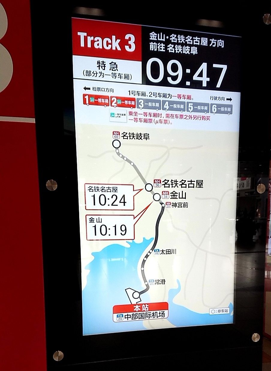 ところでこの特急列車はセントレアへのアクセスだけでなく、常滑などから名古屋市内へのアクセス列車としての役割も担っているようです。