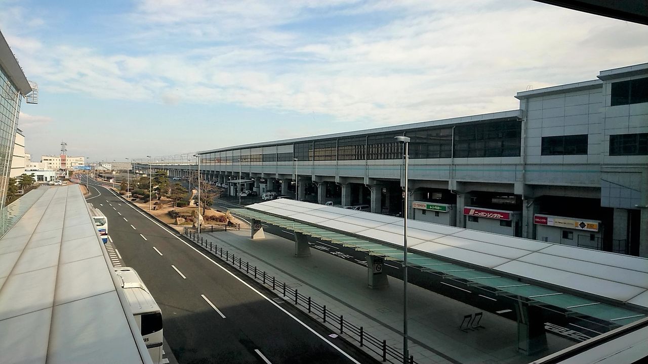 中部国際空港駅は、道路を挟んで空港ターミナルビルの反対側、立派な高架駅です。