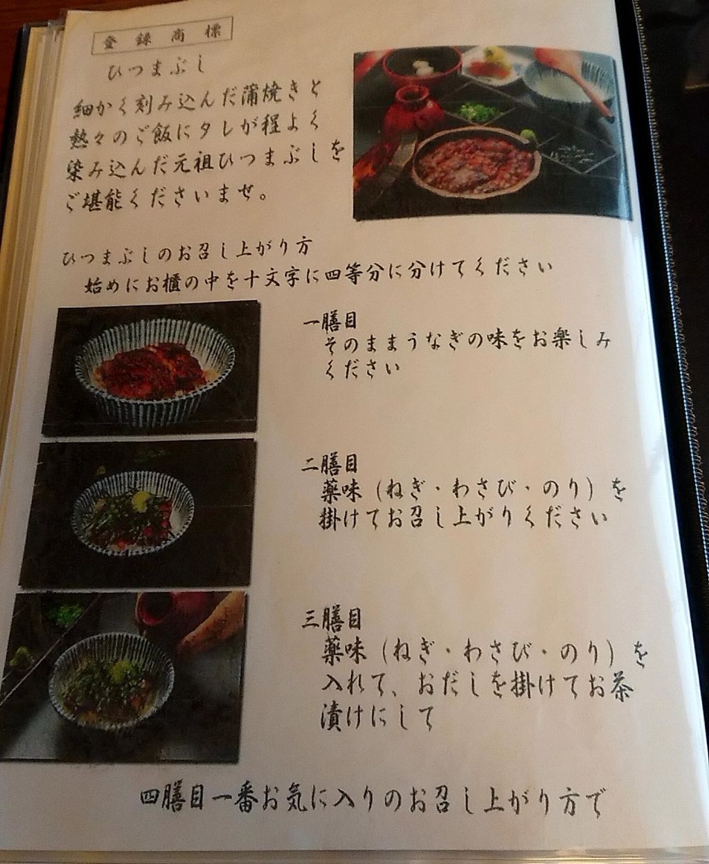 このひつまぶしの食べ方には、あつた蓬莱軒推奨の食べ方があります。