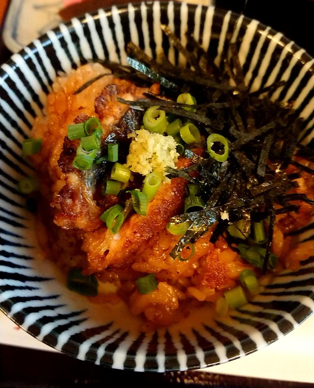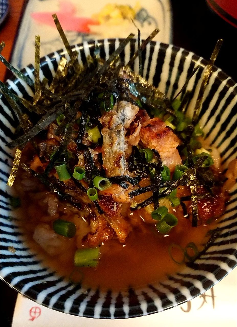 そこで鰻飯に薬味をかけ、そこにだしを少量垂らして染み込ませました。
