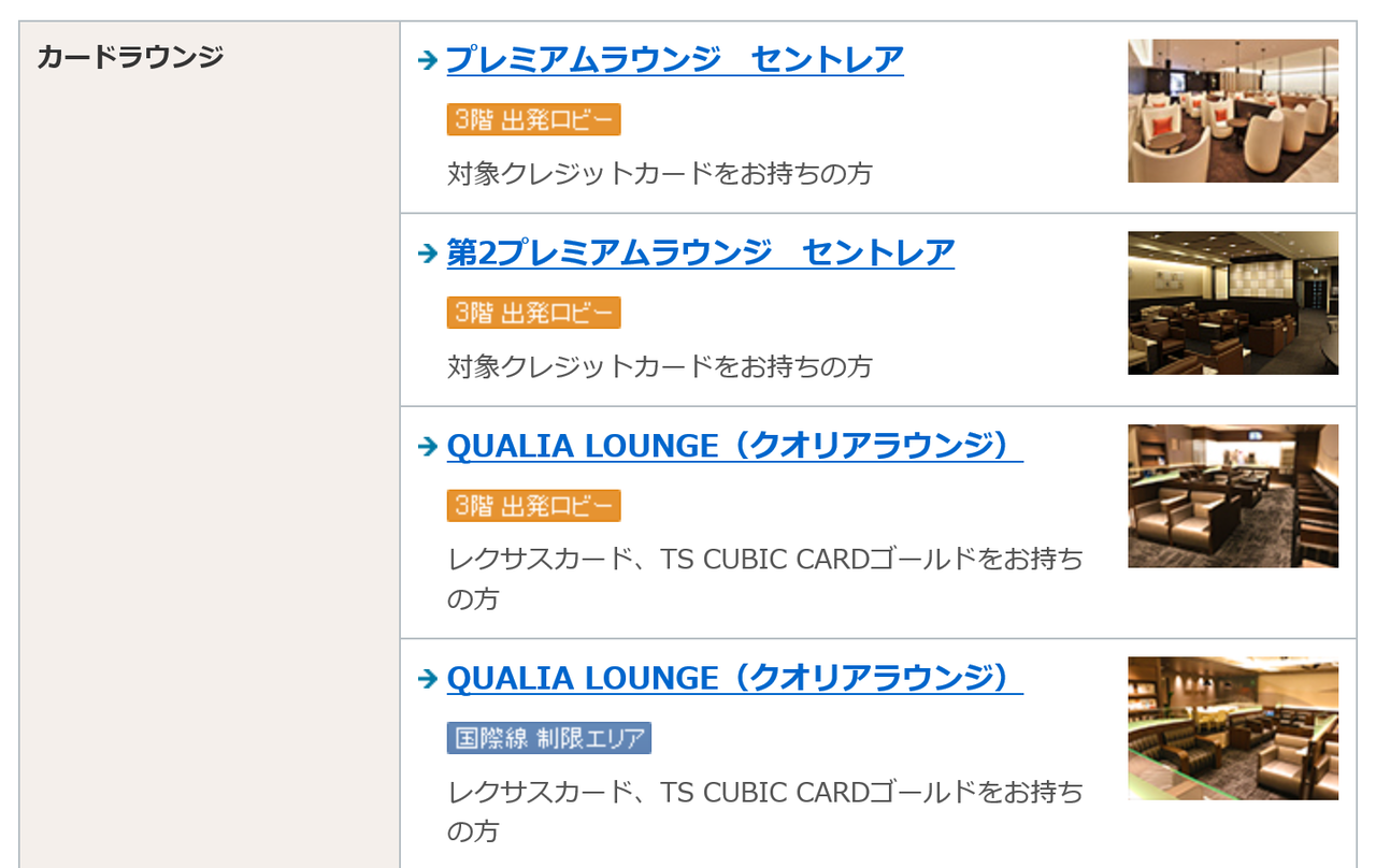 カードの種類により使えるラウンジが異なりますが、大体のカードはプレミアムラウンジ、または第2プレミアムラウンジが利用できると思っていれば問題ありません。