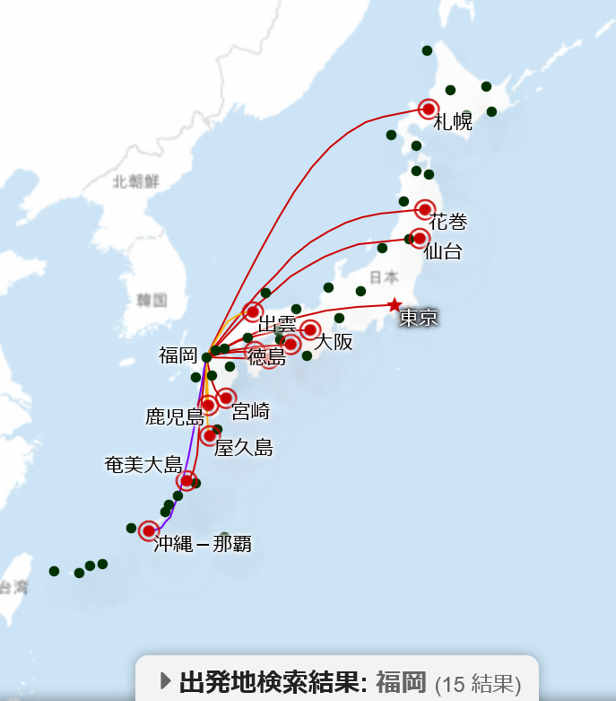 料金は悪くはありませんが、いざ利用する際には鹿児島-羽田or伊丹-福岡というように片道を三角とびルートにする必要があります。
