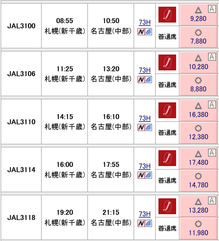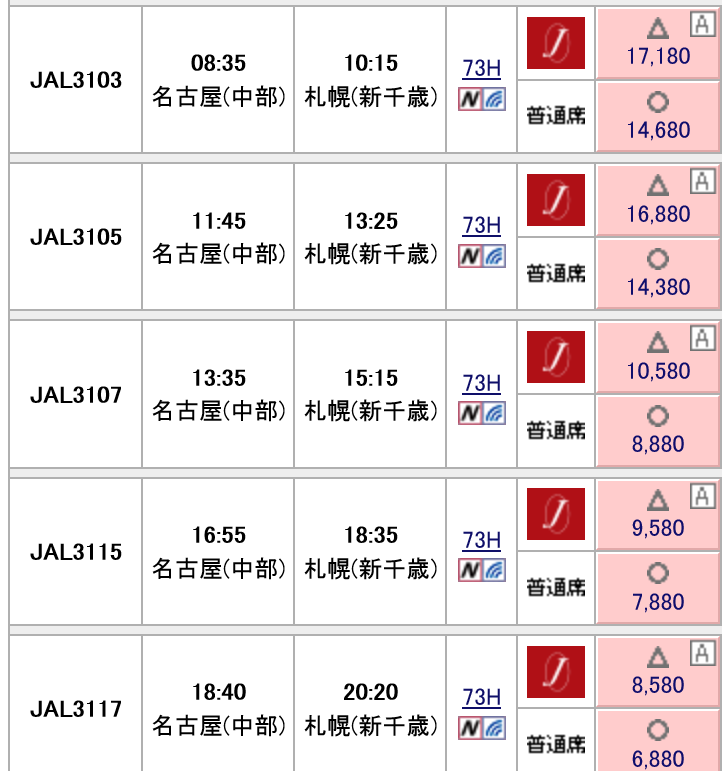 上記記事でもご紹介しているのですが、中部-新千歳線は8,000円未満の便が設定されています。