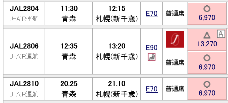 新千歳-女満別線よりも高くはなりますが、それでもJALグループ便としては安い方です。